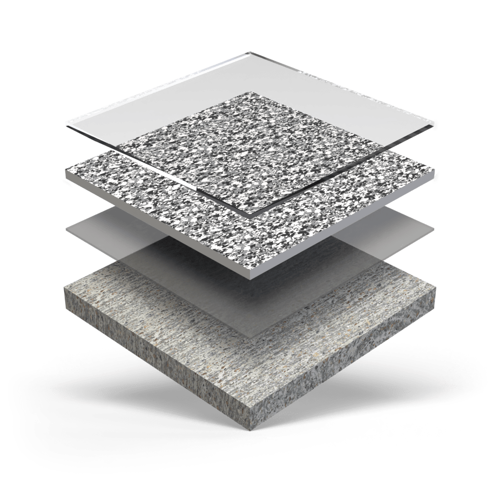 - Topcoat: UV-Stable Polyaspartic that protects your coating from Wear and Tear